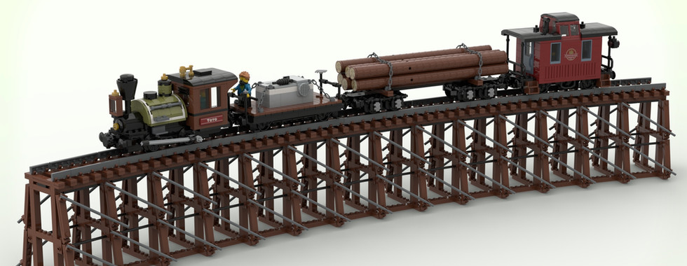 This set will include the train, the bridge and 3 minifigures. The trestle bridge reaches about 90cm in length and is about 25cm tall, while the train is about 75cm long. It has 2,706 pieces in total.